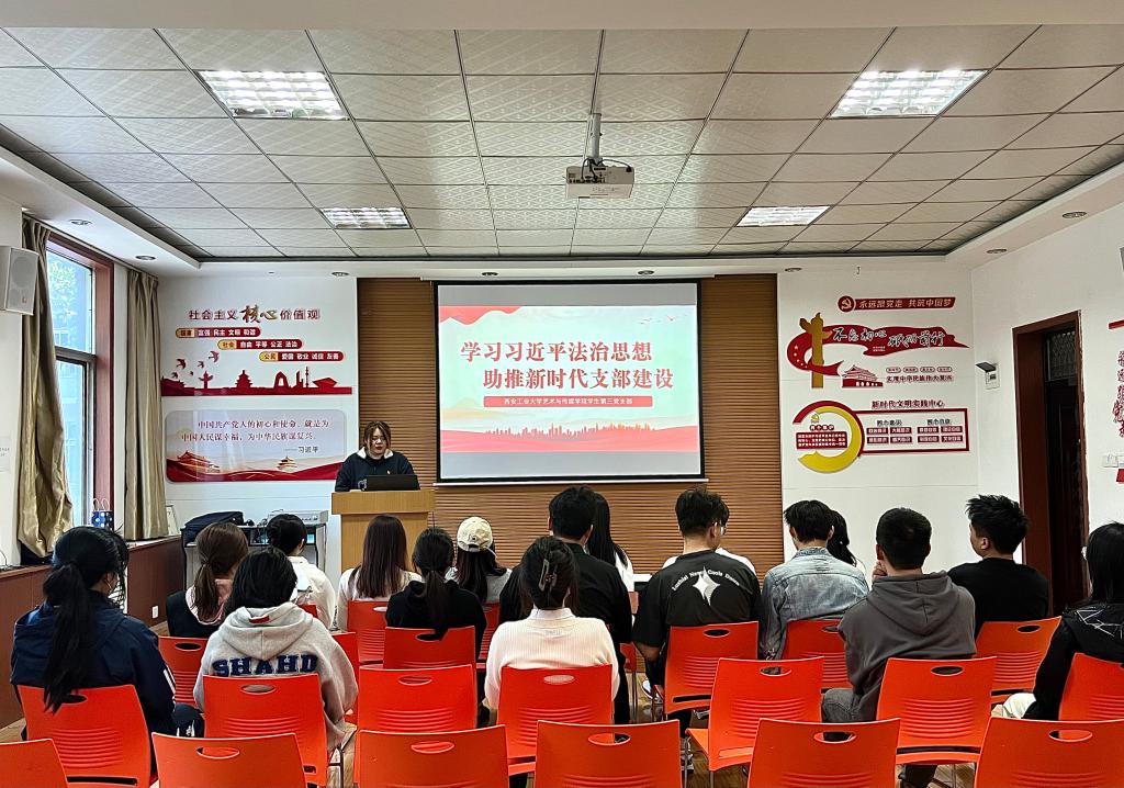 会上,支部党员共同学习习近平法治思想,内容内涵丰富、论述深刻、逻辑严密、系统完备,从历史和现实相贯通、国际和国内相关联、理论和实际相结合上深刻了解新时代为什么实行全面依法治国、怎样实行全面依法治国等一系列重大问题。支部党员师晓凤说:“我们要做习近平法治思想的坚定信仰者和忠实实践者,探索学习方法,坚持学以致用,不断提高思想觉悟,做到知行统一。”牛艺霖说:“在日常学习中,我们要主动提高政治站位和法治素养,还应充分利用课内外资源,主动学习法治思想,持续提升自己的法治素养。”