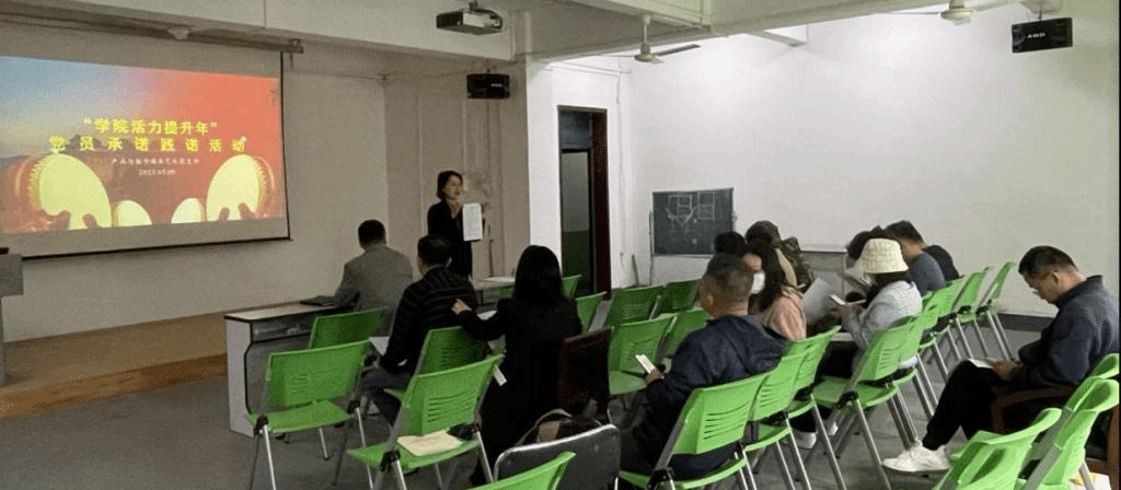 5月9日,产品与数字媒体艺术党支部开展党员承诺践诺活动,活动由党支部书记丁西蓓主持。
