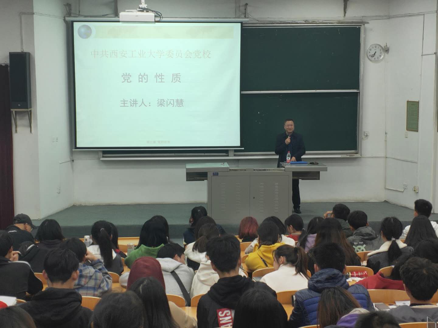 梁老师从何为党的性质讲起,他讲到:党的性质问题是马克思主义党建理论和建党实践的核心问题,它规定了党的建设实践的核心问题,它规定了党的建设的总目标,决定着党的前途和命运。梁老师带领大家通过分析中国共产党与工人阶级,中国人民和中华民族的辩证关系,加深了大家对党的性质的理解。