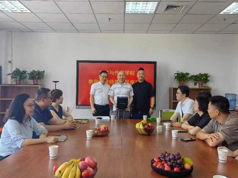 在第39个教师节来临之际,艺术与传媒学院党委书记周著、院长苏胜、学院工会主席王光奎对学院退休教师和困难教职工开展了慰问活动。