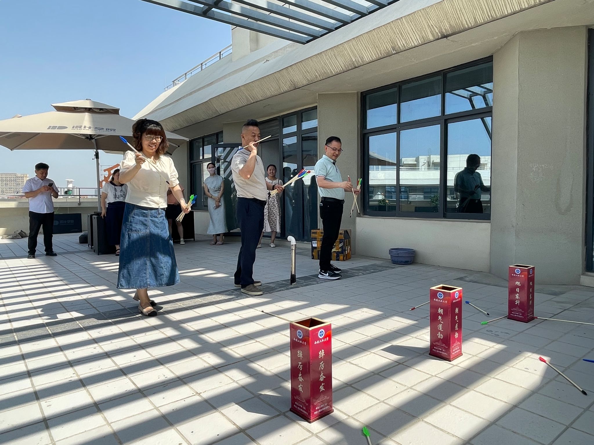 办公室工会小组在教七楼阳台开展趣味投壶比赛。办公室众工会小组成员参加比赛。