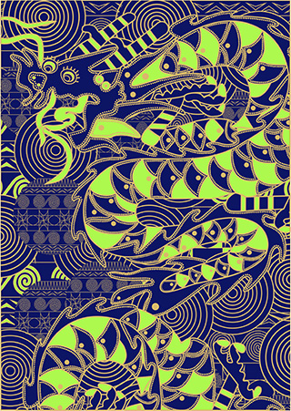 此次毕业设计选取苗族服饰纹样中最具代表性的纹样进行创新设计与应用。在造型方面使用单色线条对纹样进行重新绘制,保留其原有图形的韵味,再加入点元素丰富并突出其形体特征。在构图形式上打破苗族服饰纹样原有的规律性构图,遵循对称与均衡和节奏与韵律的形式美法则对纹样进行排列组合,使整体画面更加富有层次变化。在色彩的运用中选择苗族传统的靛蓝色与黑色作为纹样图形的背景色,并在纹样中加入苗族最为常用大红、桔红、洋红、柠黄、天蓝和淡绿等颜色,将这些颜色作为提亮色填充进纹样中。最后将苗族服饰创新纹样在生活日用品领域进行应用,希望可以在体现民族化设计的同时,展现苗族纹样的实用与审美价值,使其服务于生活,长久的传承下去。