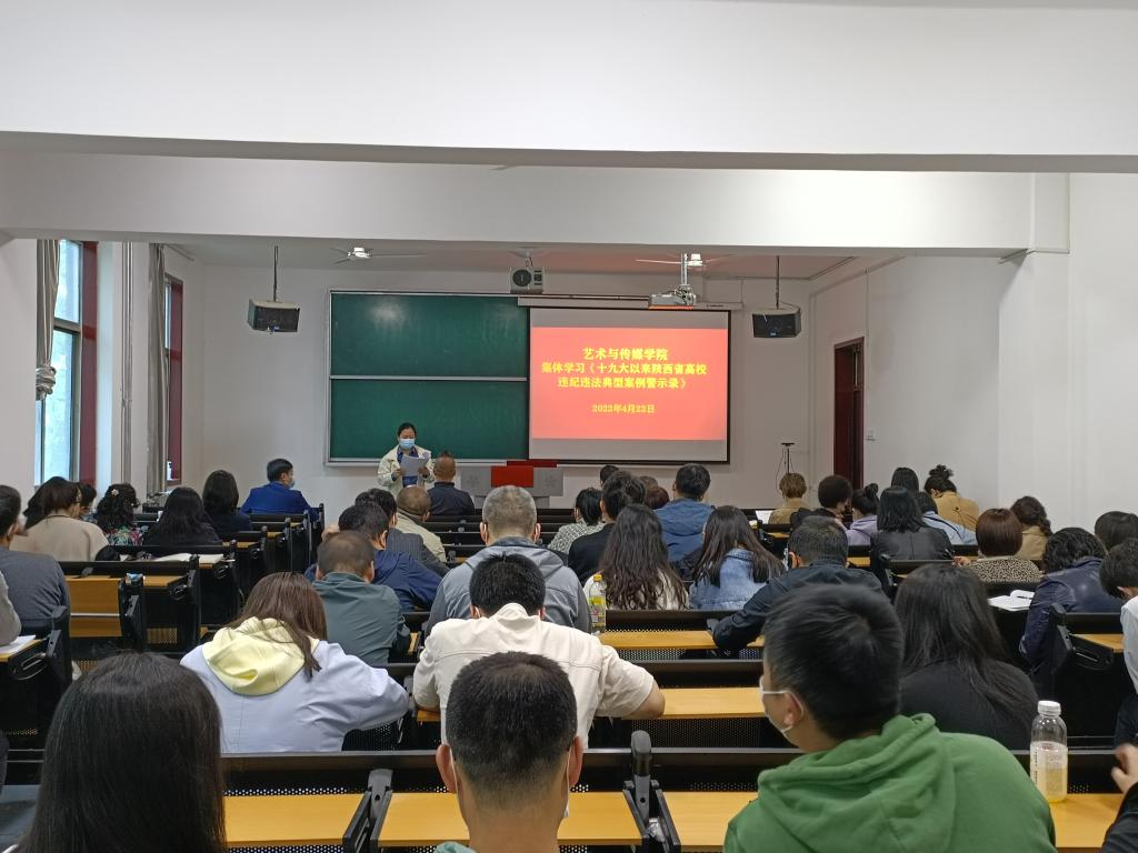4月22日下午,艺术与传媒学院组织集体学习《十九大以来陕西省高校违纪违法典型案例警示录》,会议由学院党委书记周著主持。