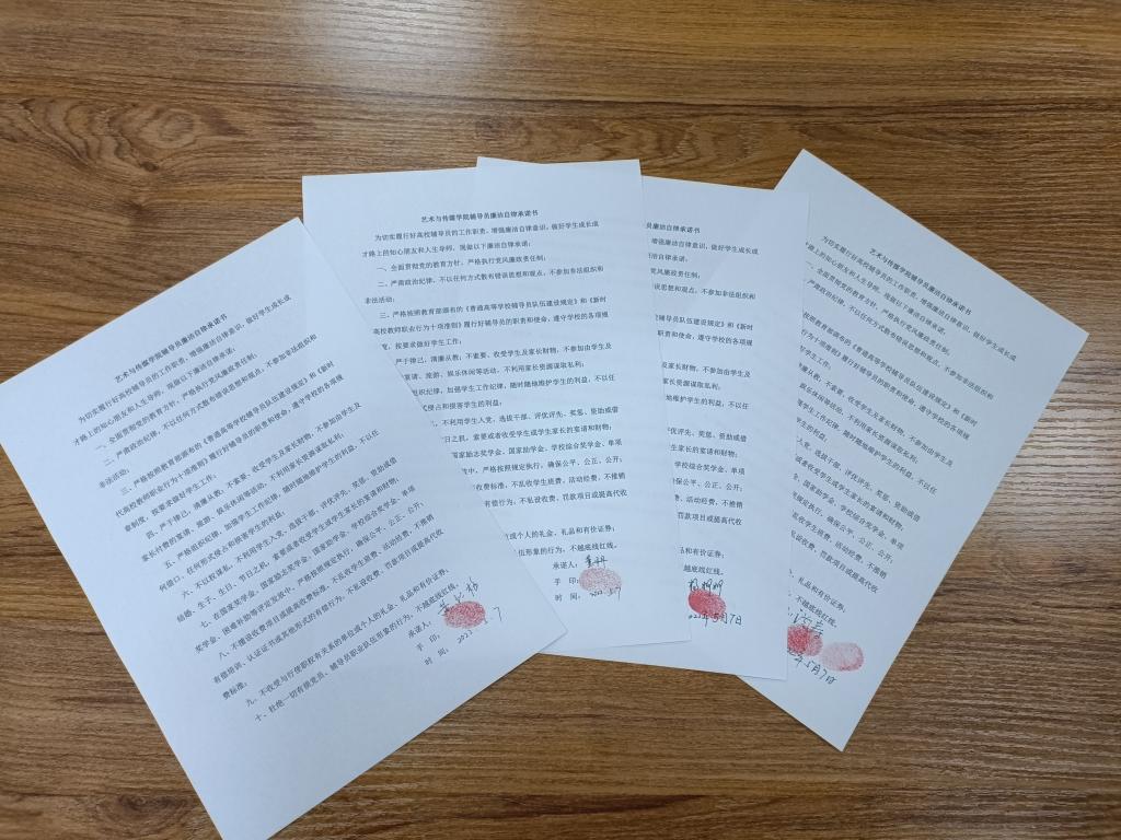 会后,全体辅导员签订了《艺术与传媒学院辅导员廉洁自律承诺书》。