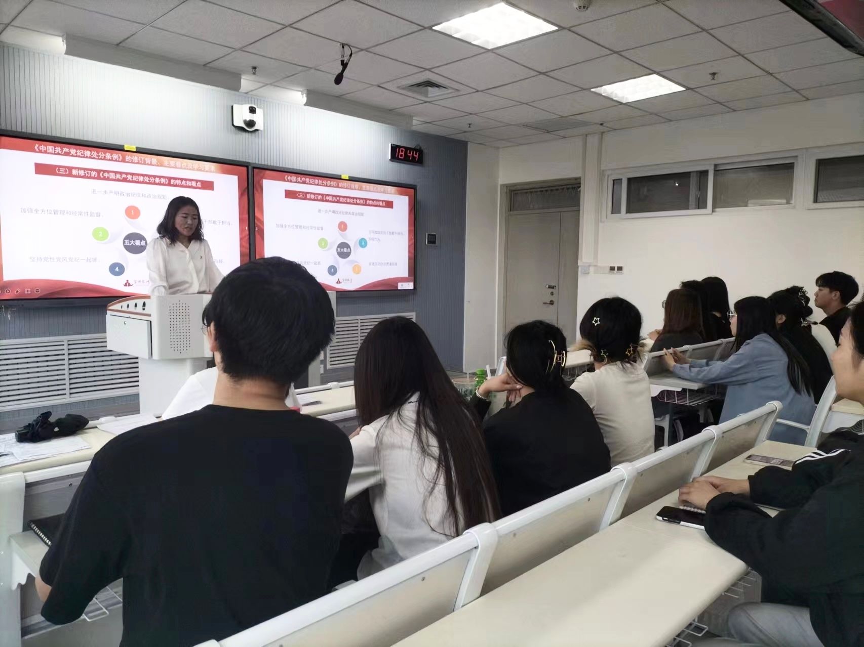 董丹丹首详细解读了最新修订的《中国共产党纪律处分条例》,深入分析了条例修订背景,主要过程和重要意义,并重点介绍了新修订的《中国共产党纪律处分条例》的特点和看点。她强调,广大党员要始终把纪律建设摆在更加突出位置,党规制定、党纪教育、执纪监督全过程都要贯彻严的要求,全面深入学习、全面加强党纪教育,增强遵规守纪自觉、深化严格执纪。