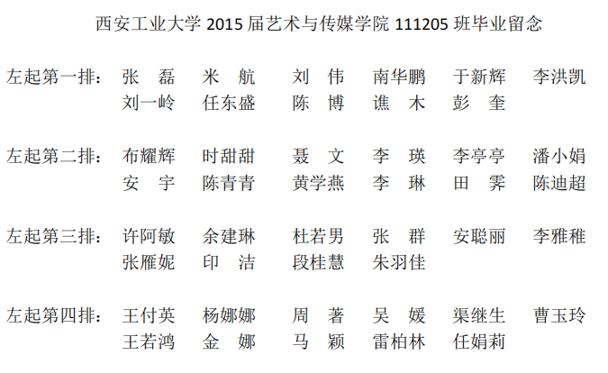 2015届艺术与传媒学院111205班毕业合影