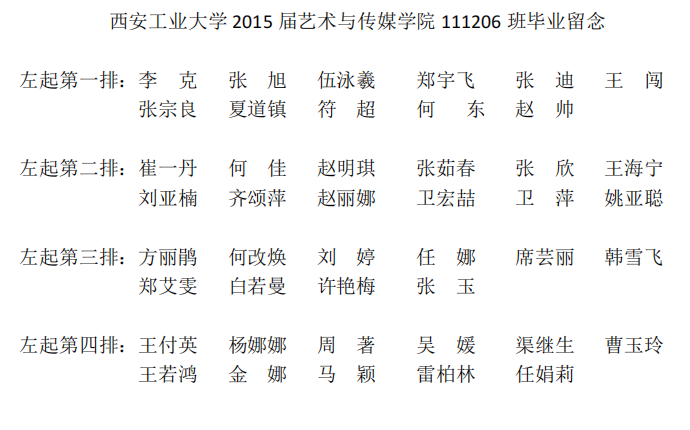 2015届艺术与传媒学院111206班毕业合影