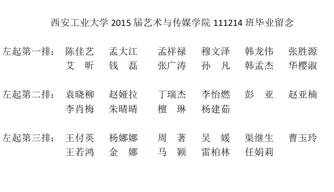 2015届艺术与传媒学院111214班毕业合影