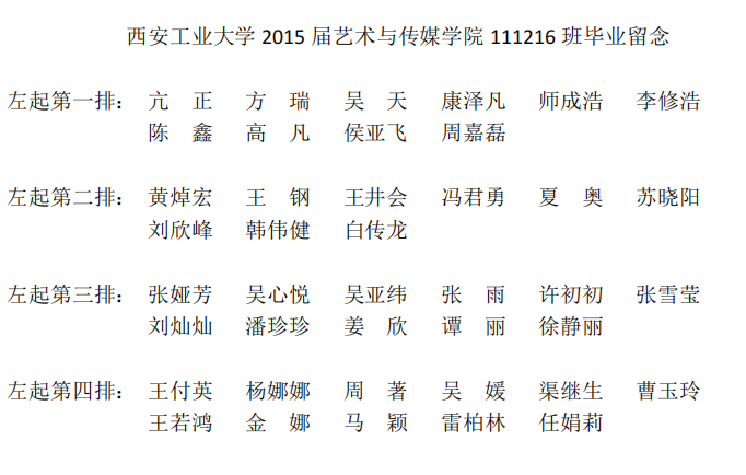 2015届艺术与传媒学院111216班毕业合影