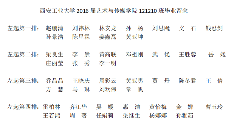 2016届艺术与传媒学院121210班毕业合影