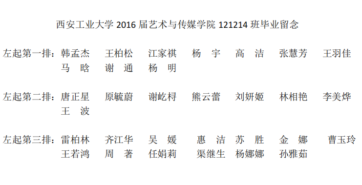 2016届艺术与传媒学院121214班毕业合影