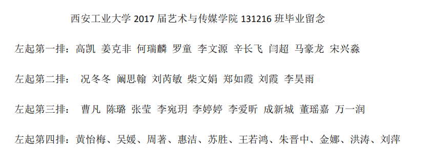 2017届艺术与传媒学院131216班毕业合影