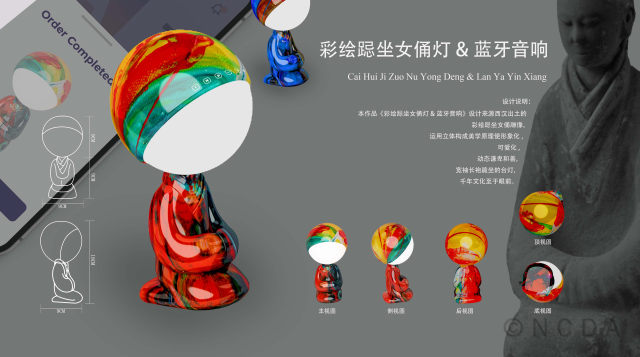 作品:彩绘跽坐女俑灯&蓝牙音响 创作人员:田霞、张岳、杜家倪 指导教师:周著